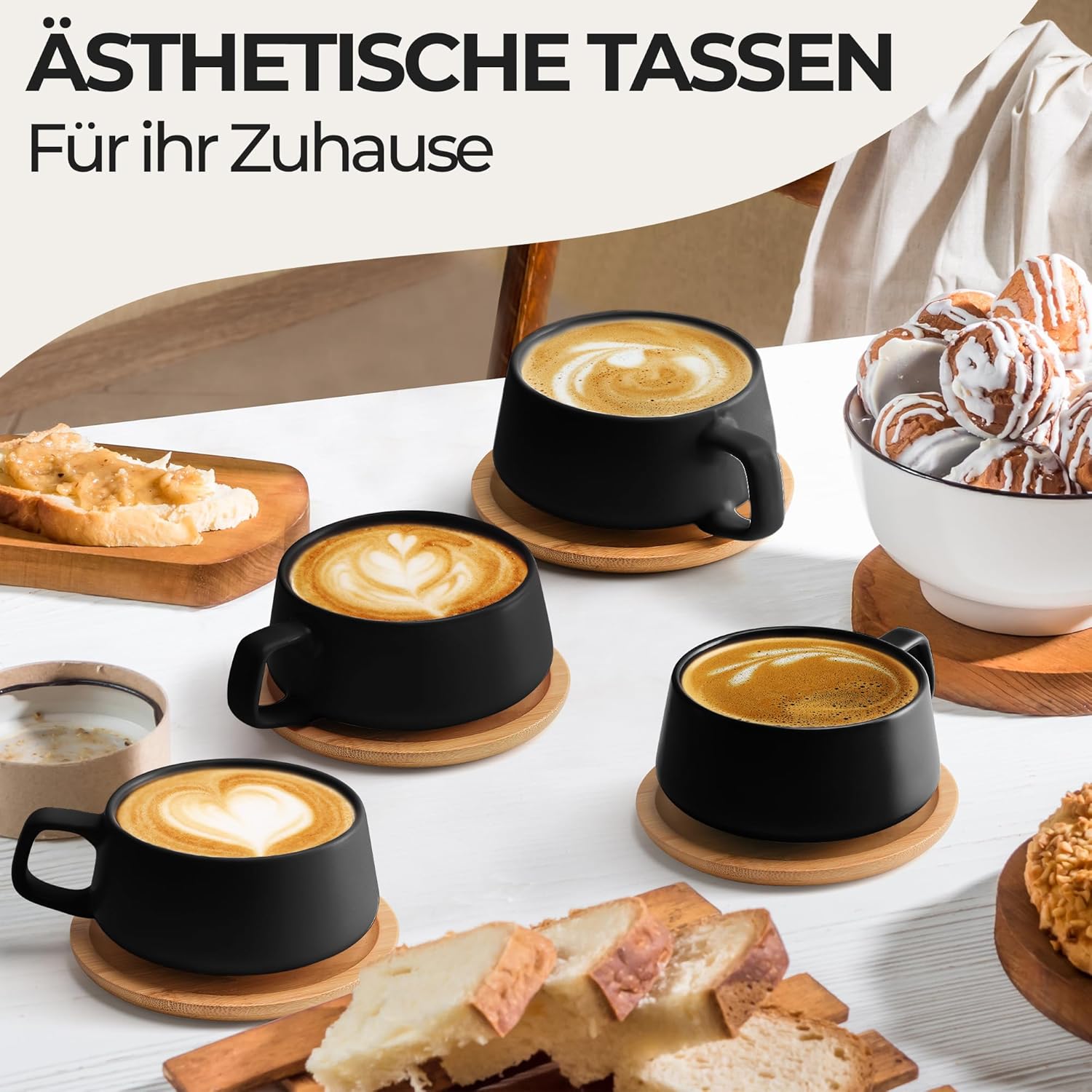 1️⃣ Set van 4 kopjes met schotels – perfect voor thuis, kantoor of gasten.
