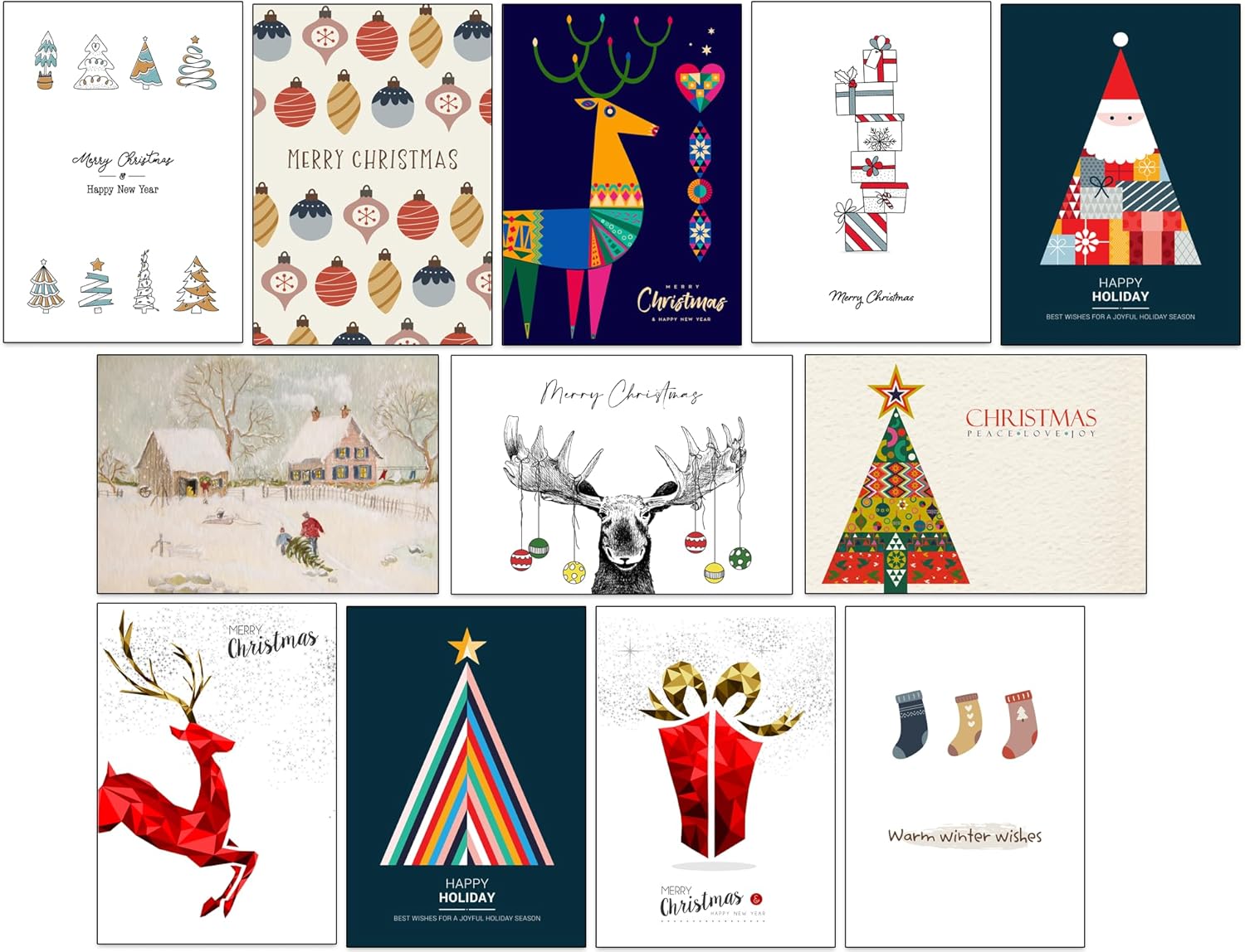 Verspreid kerstvreugde met deze set van 50 kerstkaarten met 50 verschillende populaire ontwerpen. Elke kaart is uniek en wordt geleverd met een gerecyclede kraft envelop, wat deze set niet alleen stijlvol maar ook milieuvriendelijk maakt.