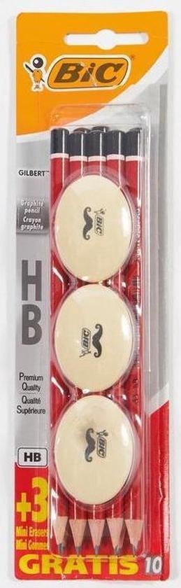 Kwalitatief grafietpotlood dat kan gebruikt worden voor te schrjiven of tekenen. Gemakkelijk te slijpen + gom van synthetisch rubber, 10 potloden + 3 gommen op blister