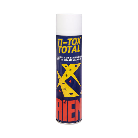 Riem Ti-Tox Total Ongedierteverdelger 400 ml is een krachtige spray tegen kruipende en vliegende insecten. Deze effectieve formule bestrijdt snel en langdurig mieren, kakkerlakken, vlooien, spinnen, vliegen, muggen en andere insecten in en rondom het huis.